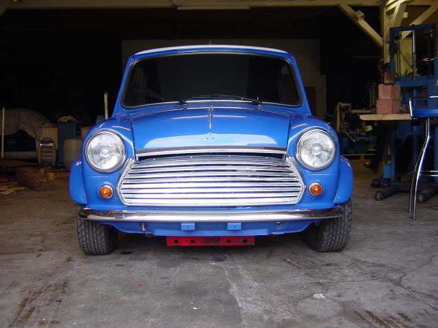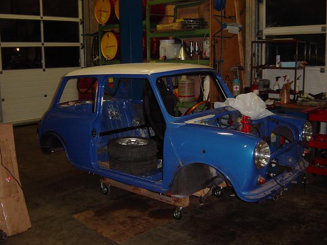 Zurzeit sind die Hilfsrahmen draussen, damit ich sie neu lackieren lassen kann. Der Mini steht jetzt auf 3 Zoll OBI-Stahlfelgen.