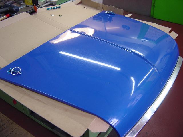 Ausserdem wurde die Haube auf Schnellverschlüsse umgerüstet. Die Dreiecksbleche im Motorraum dafür sind schon eingeschweisst.