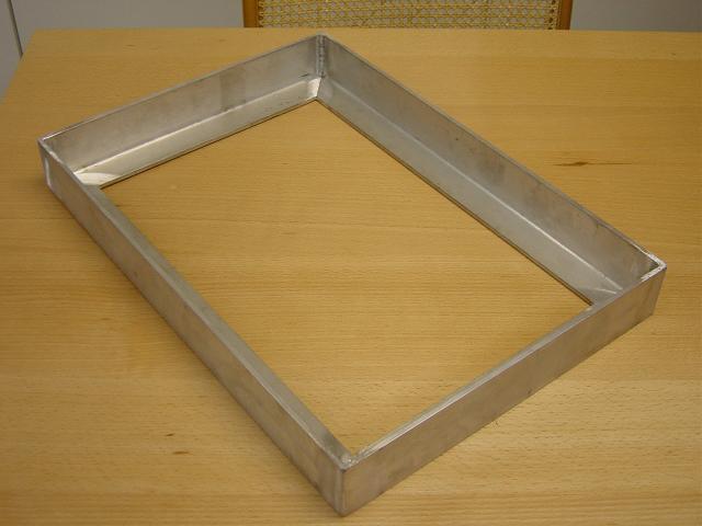 Unser Schweisser im Dorf hat mir aber einen Alu-Rahmen für den Tank gemacht. Dieser wird auf Gummis gelagert mit dem Fahrzeugboden verschraubt werden.
