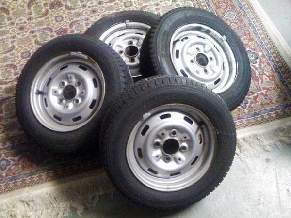 Die Felgen sind 12 Zoll und ohne Radbolzensatz. Eine Felge hat eine ziemlich starke Unwucht, kann aber nach Aussage meiner Werkstatt auf der Hinterachse genutzt werden. Alle anderen Felgen sind perfekt ausgewuchtet.