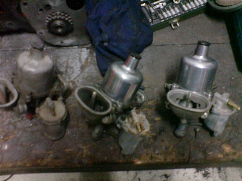 drei HS 4 vergaser, zwei davon mit polierter vergaserglocke, kann aber nicht sagen ob sie noch gut sind oder überholt werden müssen. deshalb am besten an selbstabholer